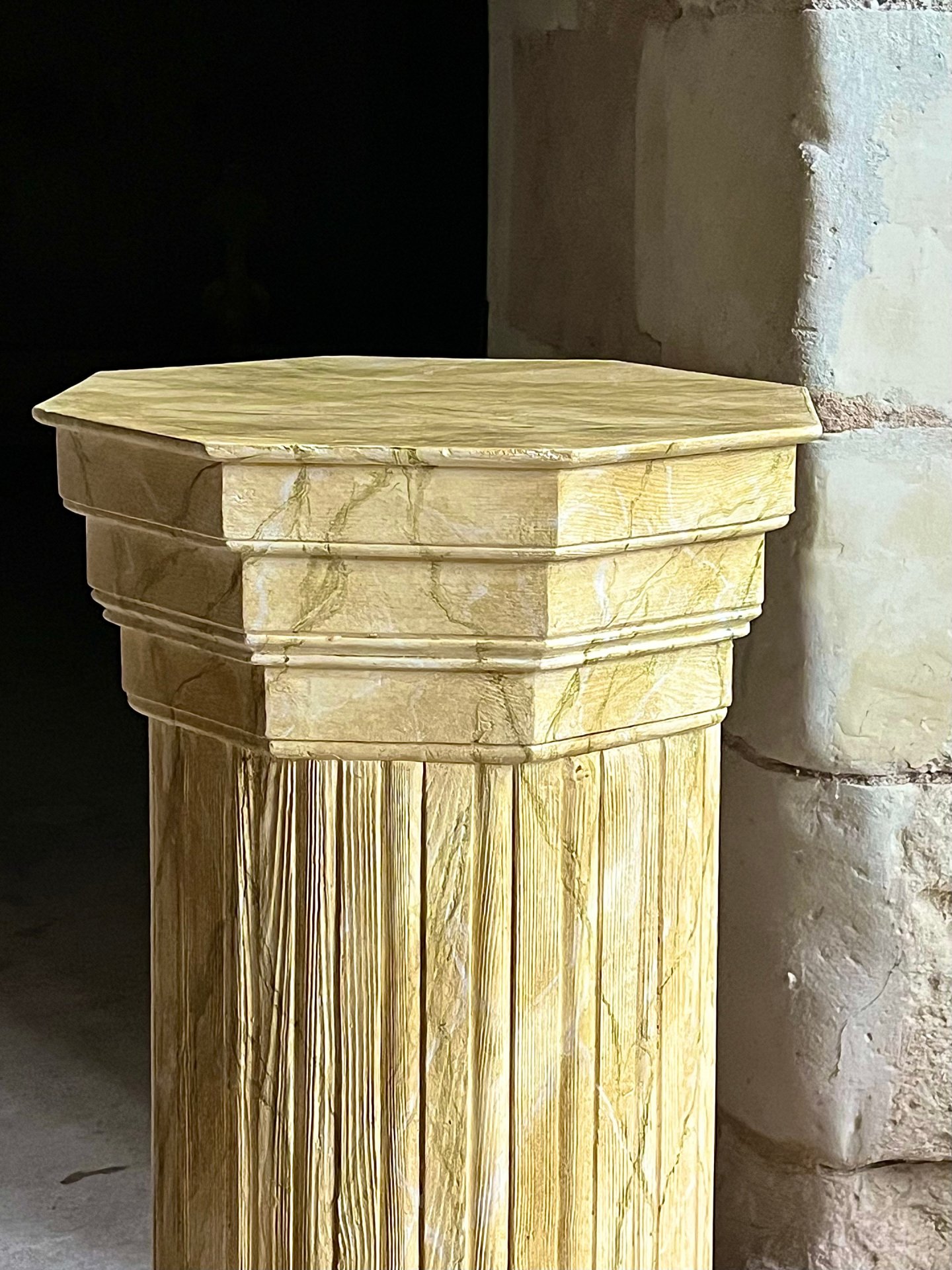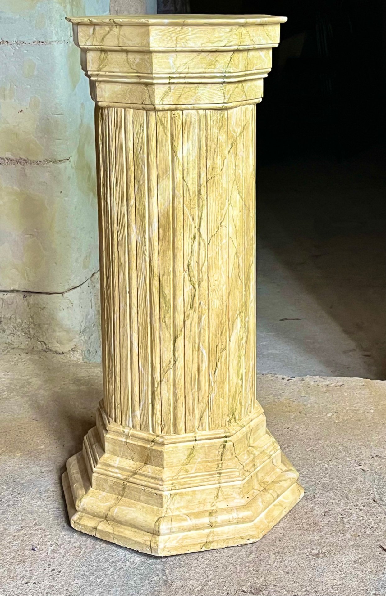 Colonne à fut cannelé , époque tout début XX ème , années 1900 , en pin à décor de faux marbre .