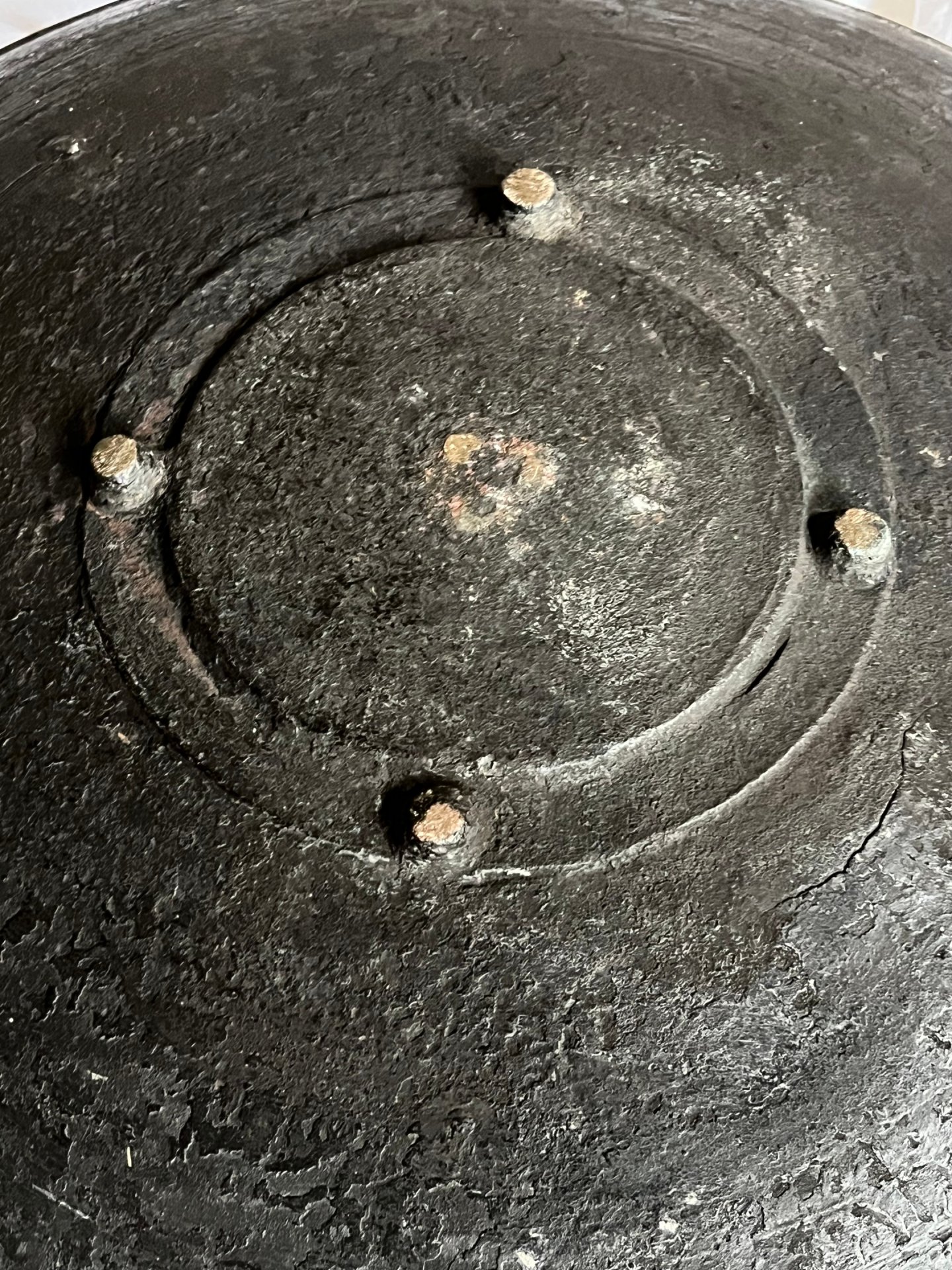 En très bon état , sans fente ni trou , il sonne parfaitement . Superbe patine d’usage .