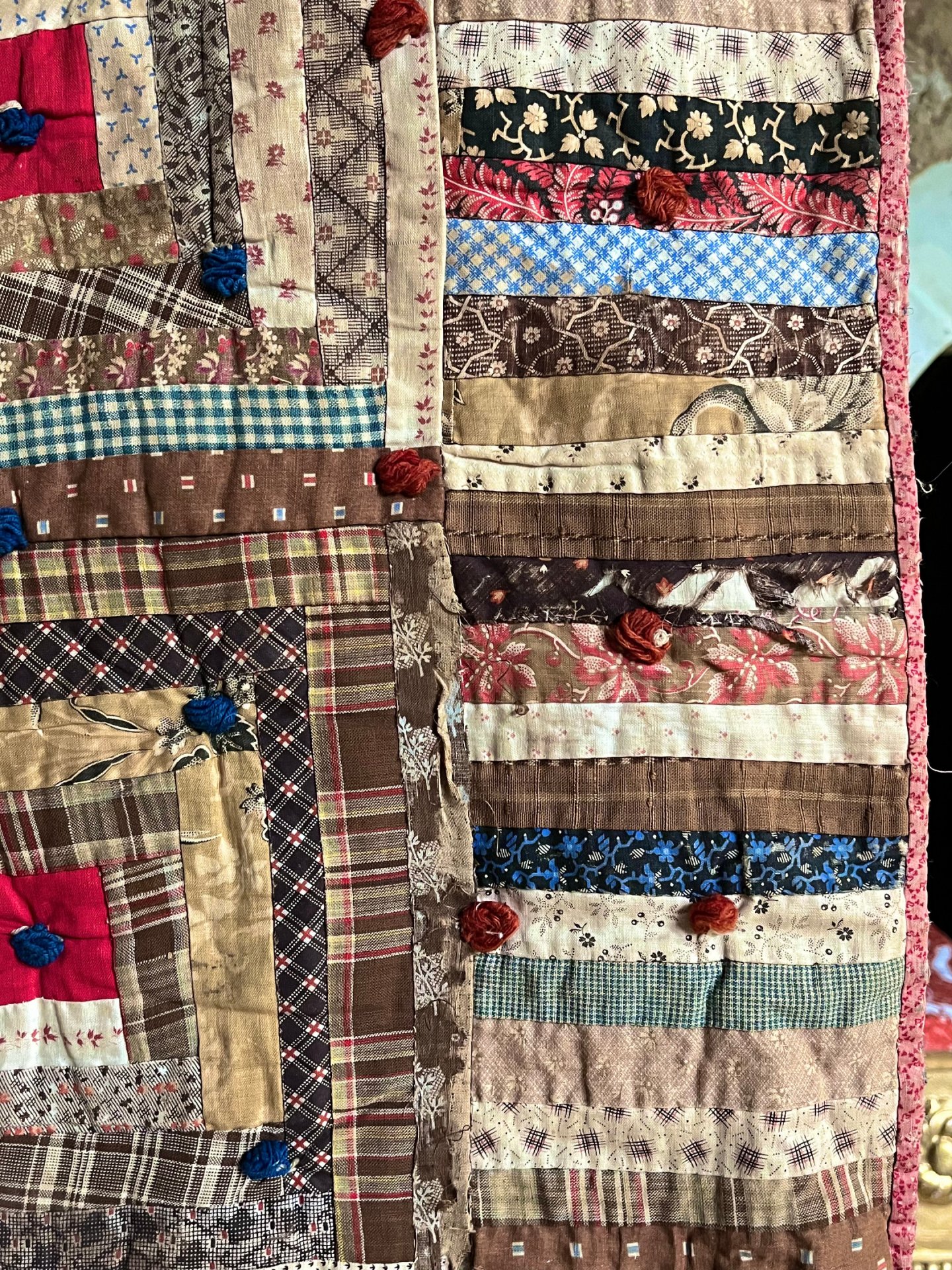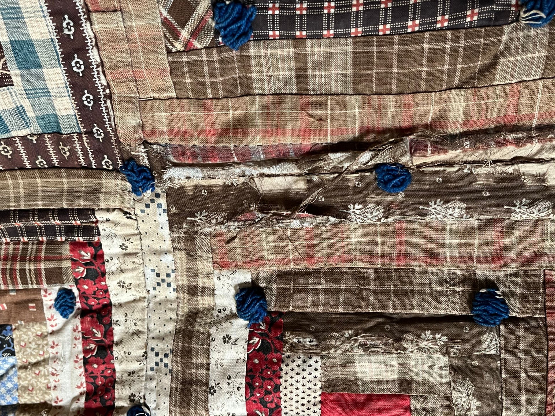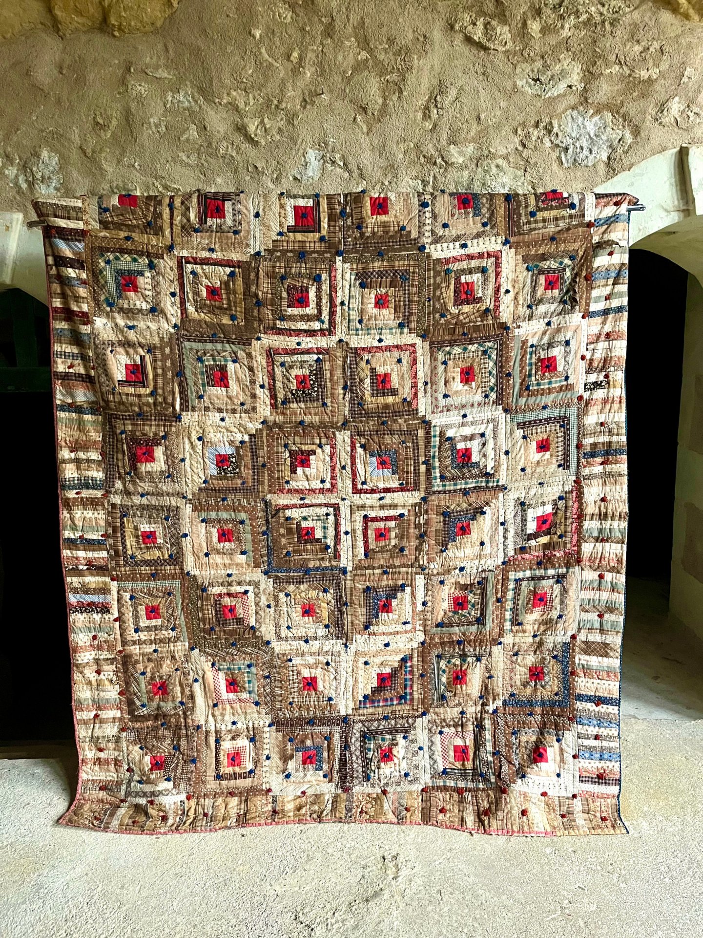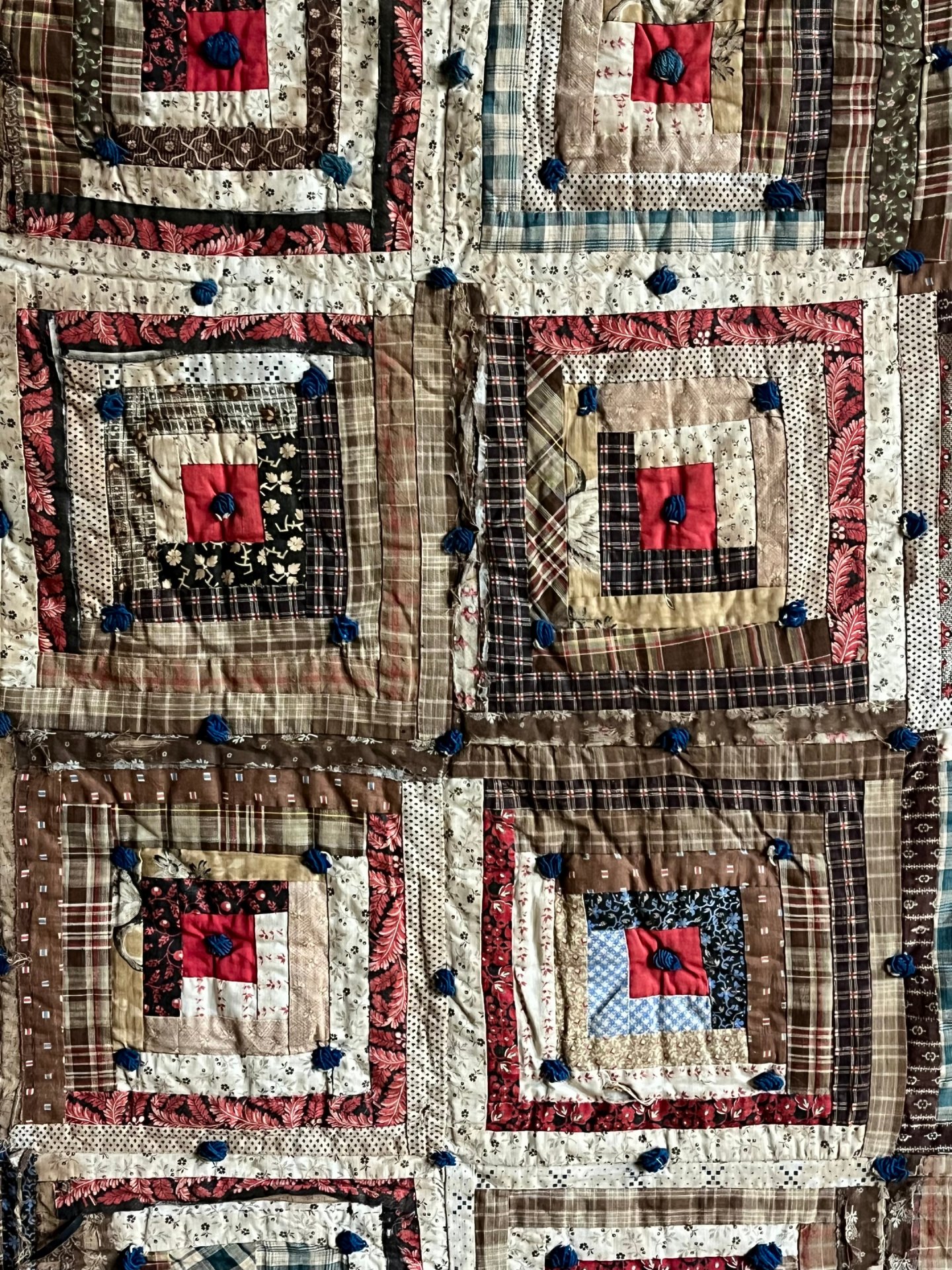 Remarquable quilt américain , Log Cabin , circa 1860 , originaire d’un état de la nouvelle Angleterre , Pennsylvanie ou Connecticut .