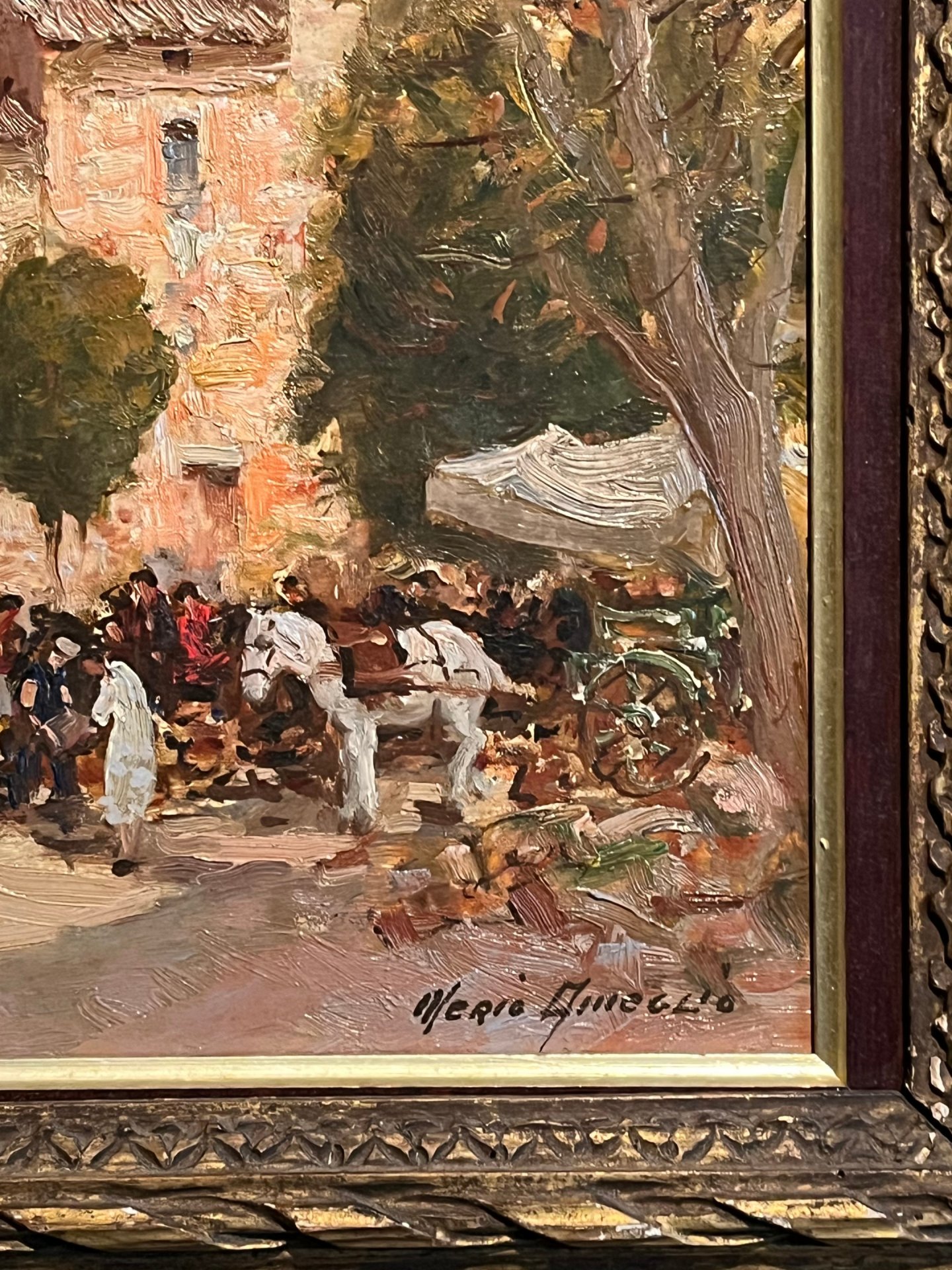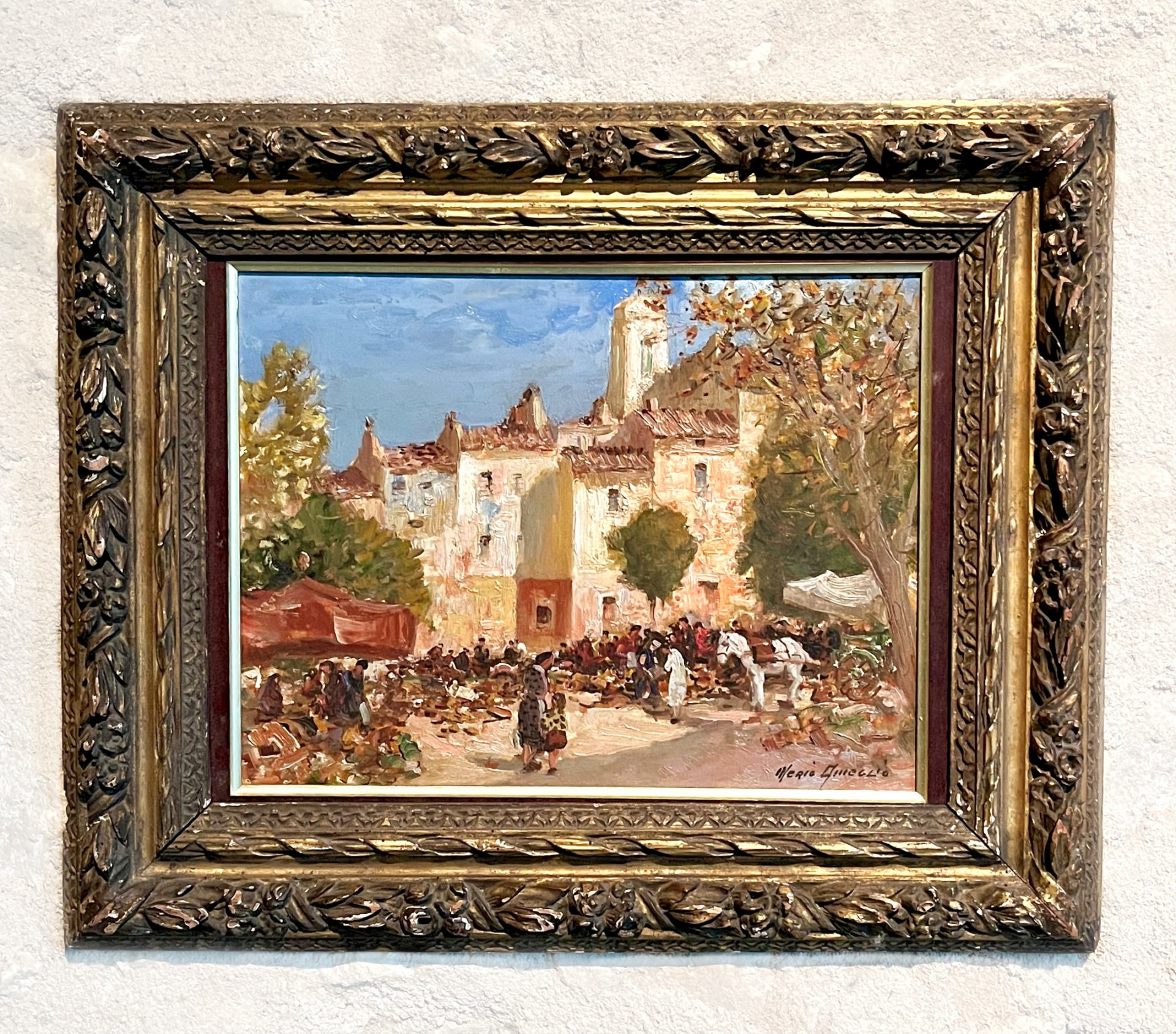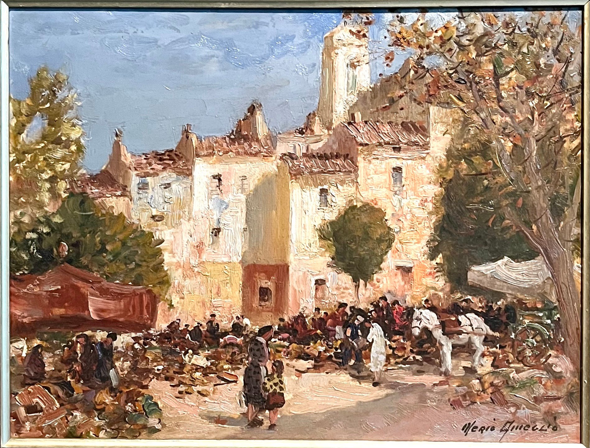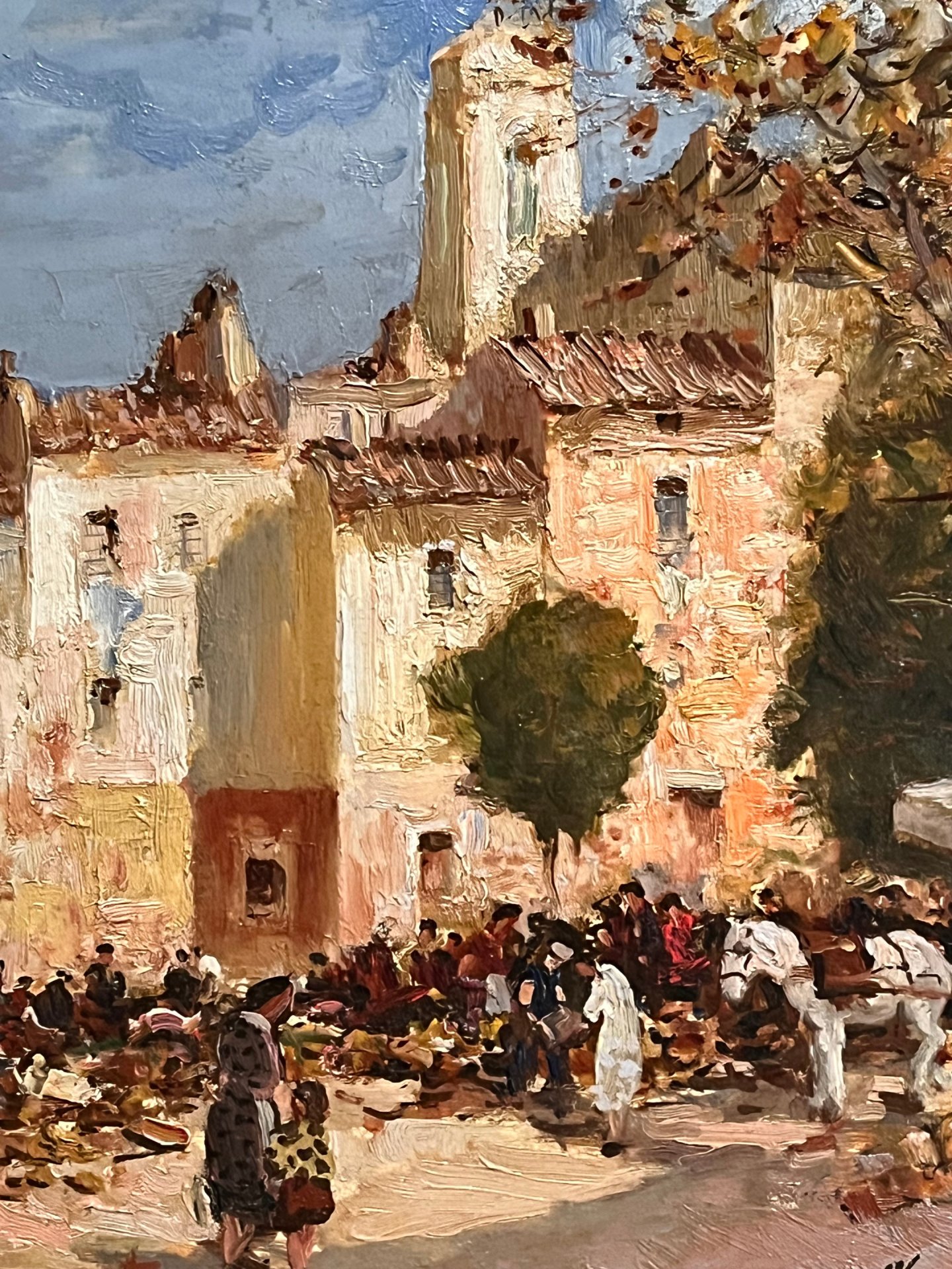 Mérios Ameglio. (1897 - 1970) Market scene in the southOil on wood panel signed lower right Mério Ameglio View of a market in a southern village.
