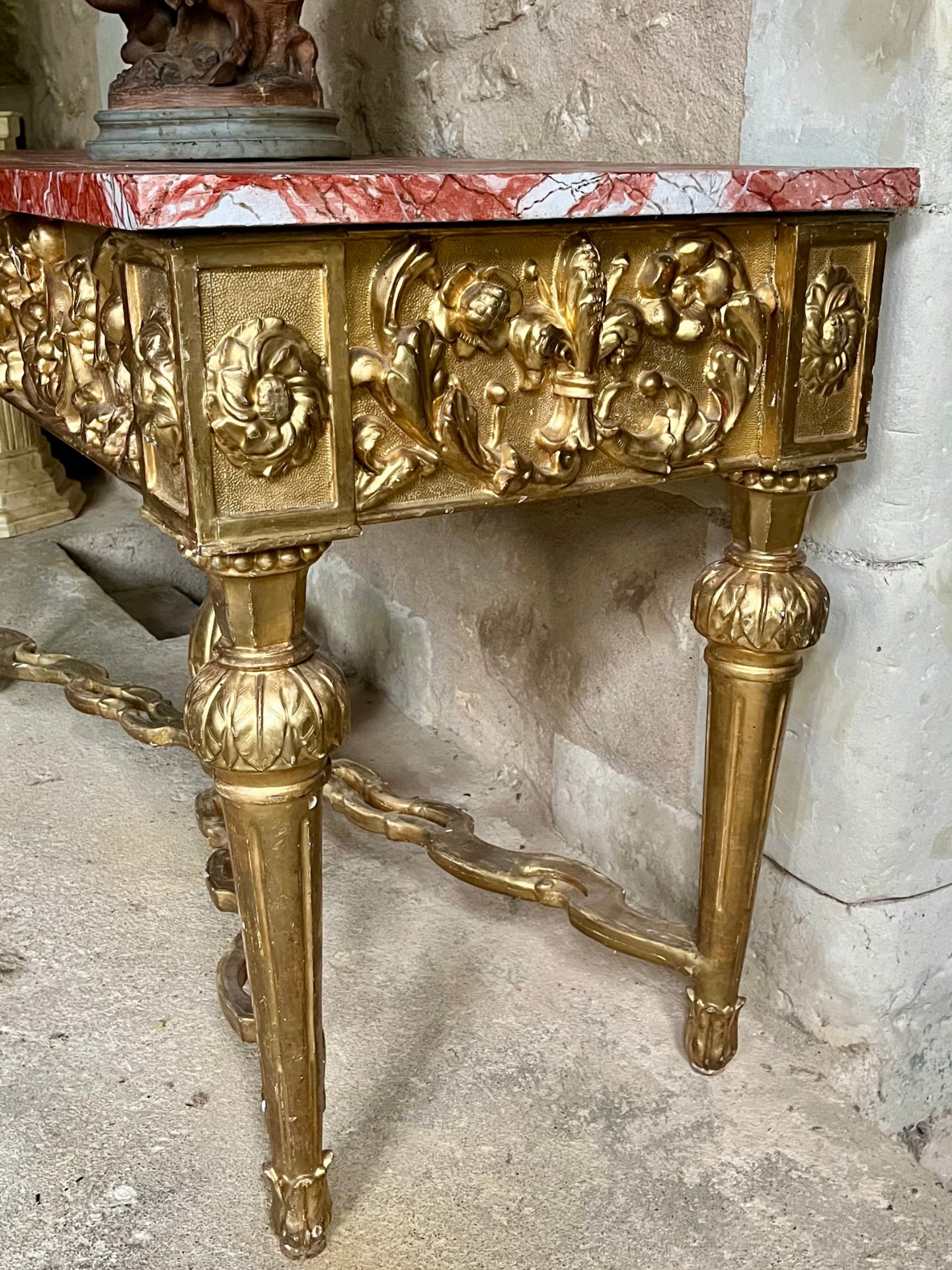 Grande console italienne d'époque fin XVIII ème en bois doré.