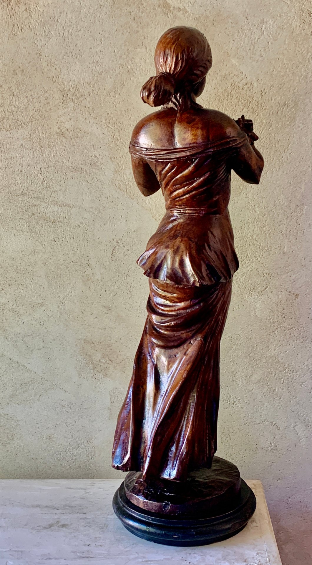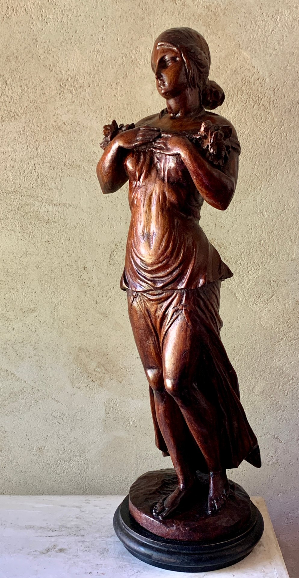 Jeune femme au fleurs hauteur 52 cm socle compris