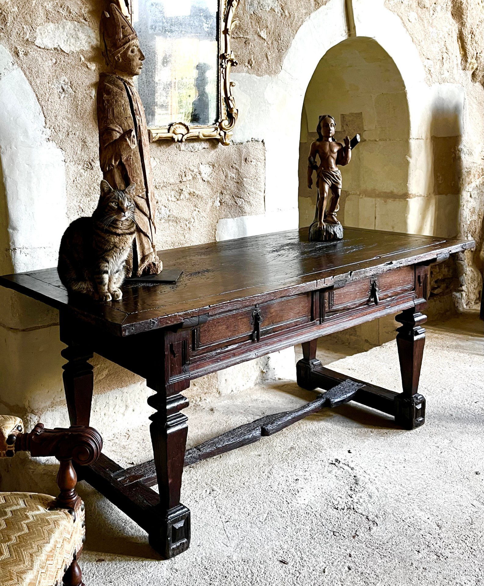 Belle table de milieu en châtaignier, d’époque XVI ème siècle .