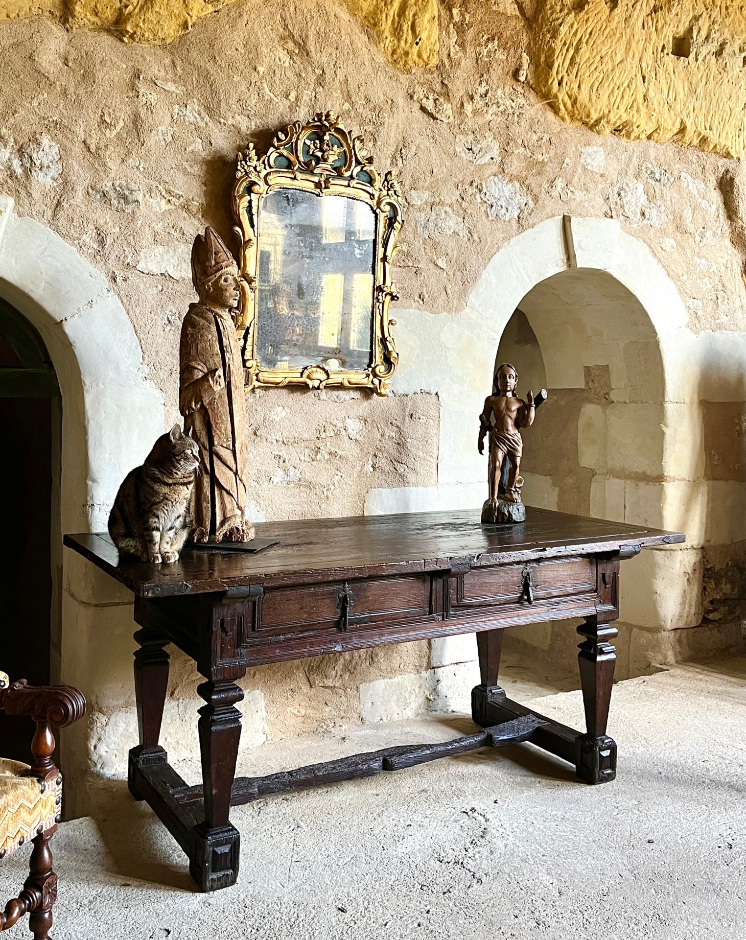 Both rustic and elegant, its superb dark patina, the thickness of the wood, and the marks of time give it a great look.