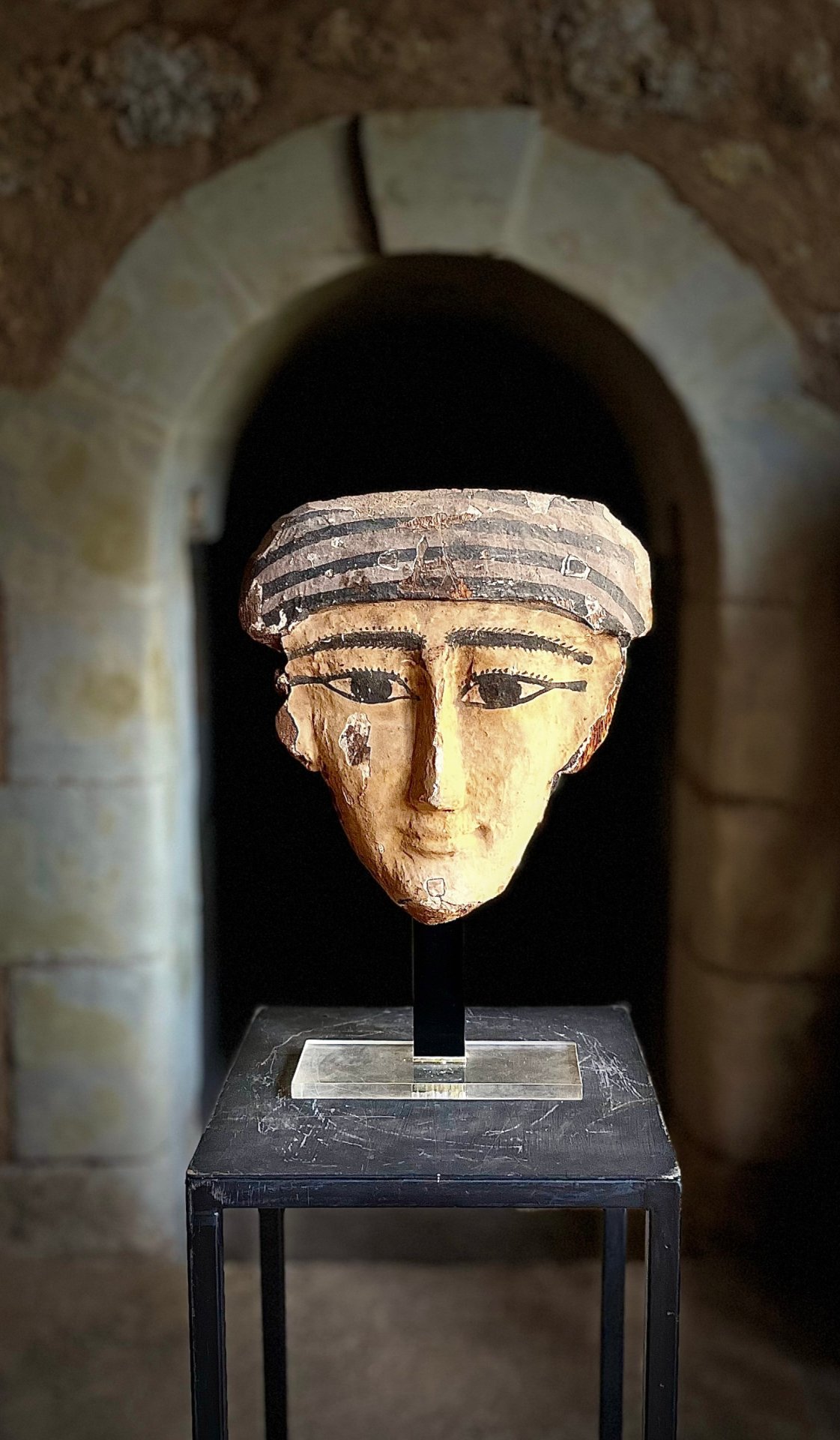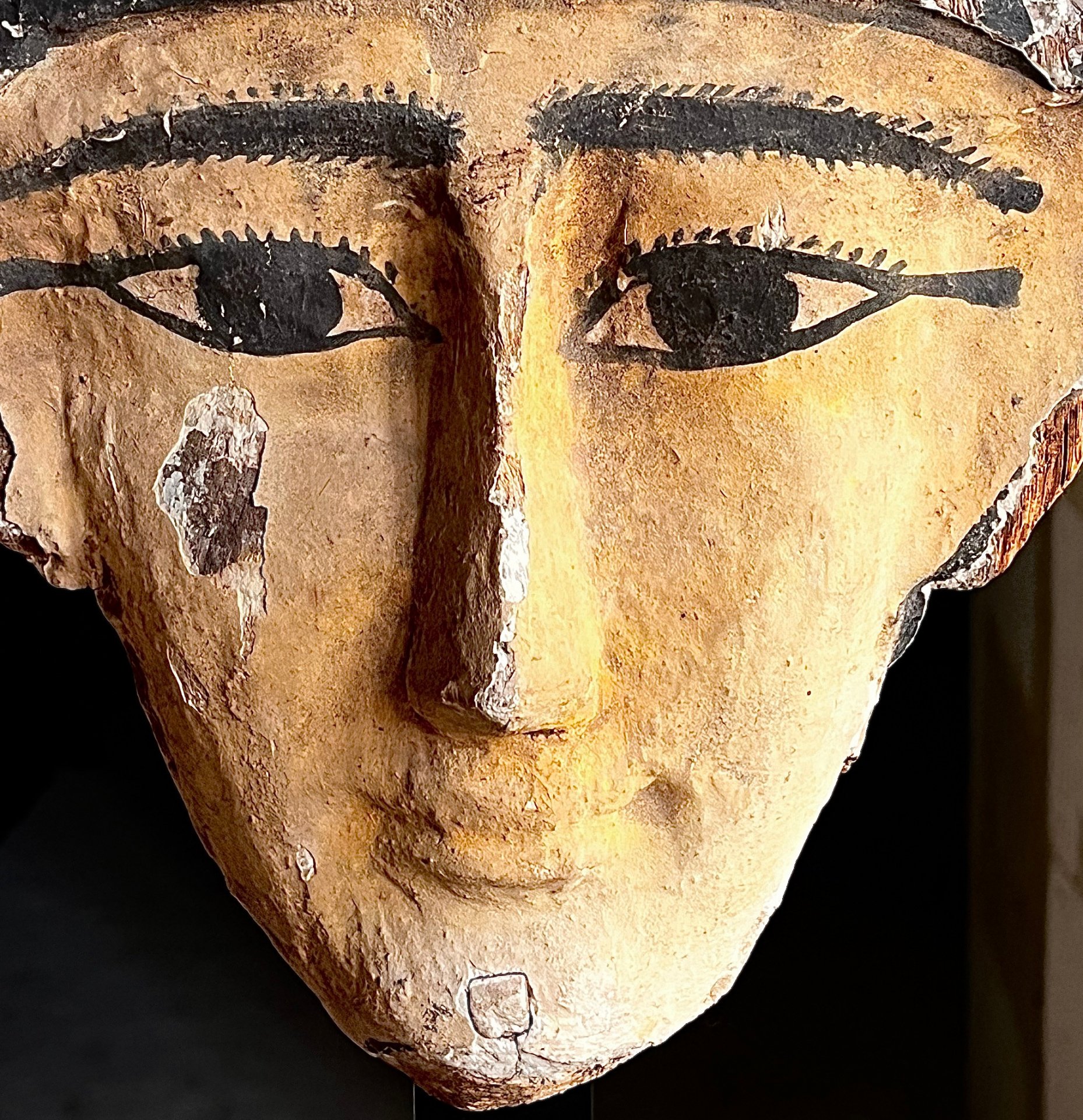 Le masque faisait partie d’un cercueil anthropoïde en bois.