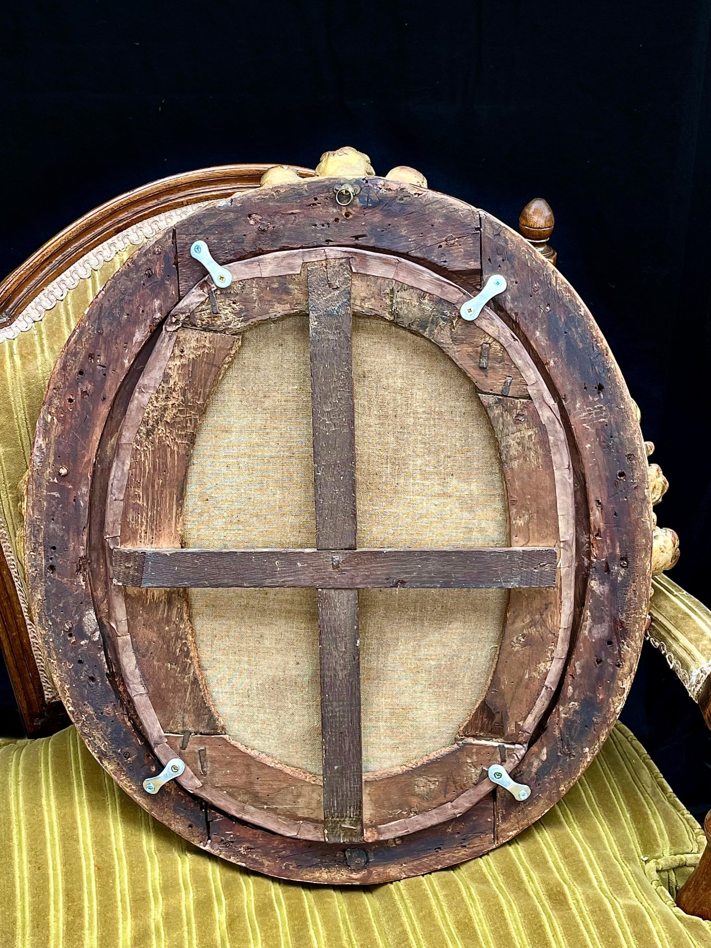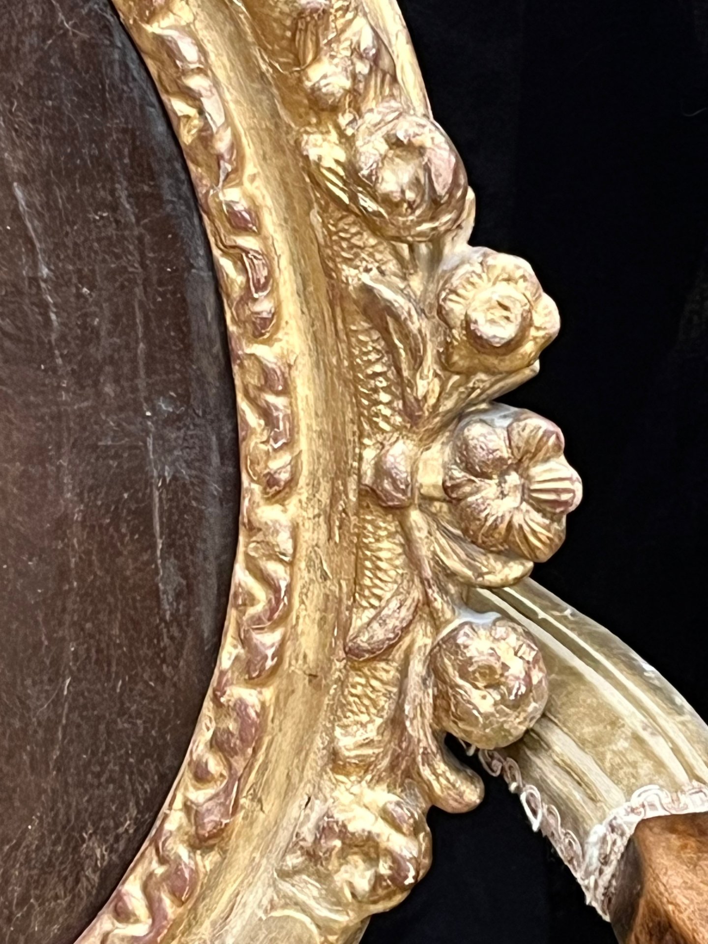 Huile sur toile époque XVII ème dans son cadre d'origine en bois doré joliment sculpté .