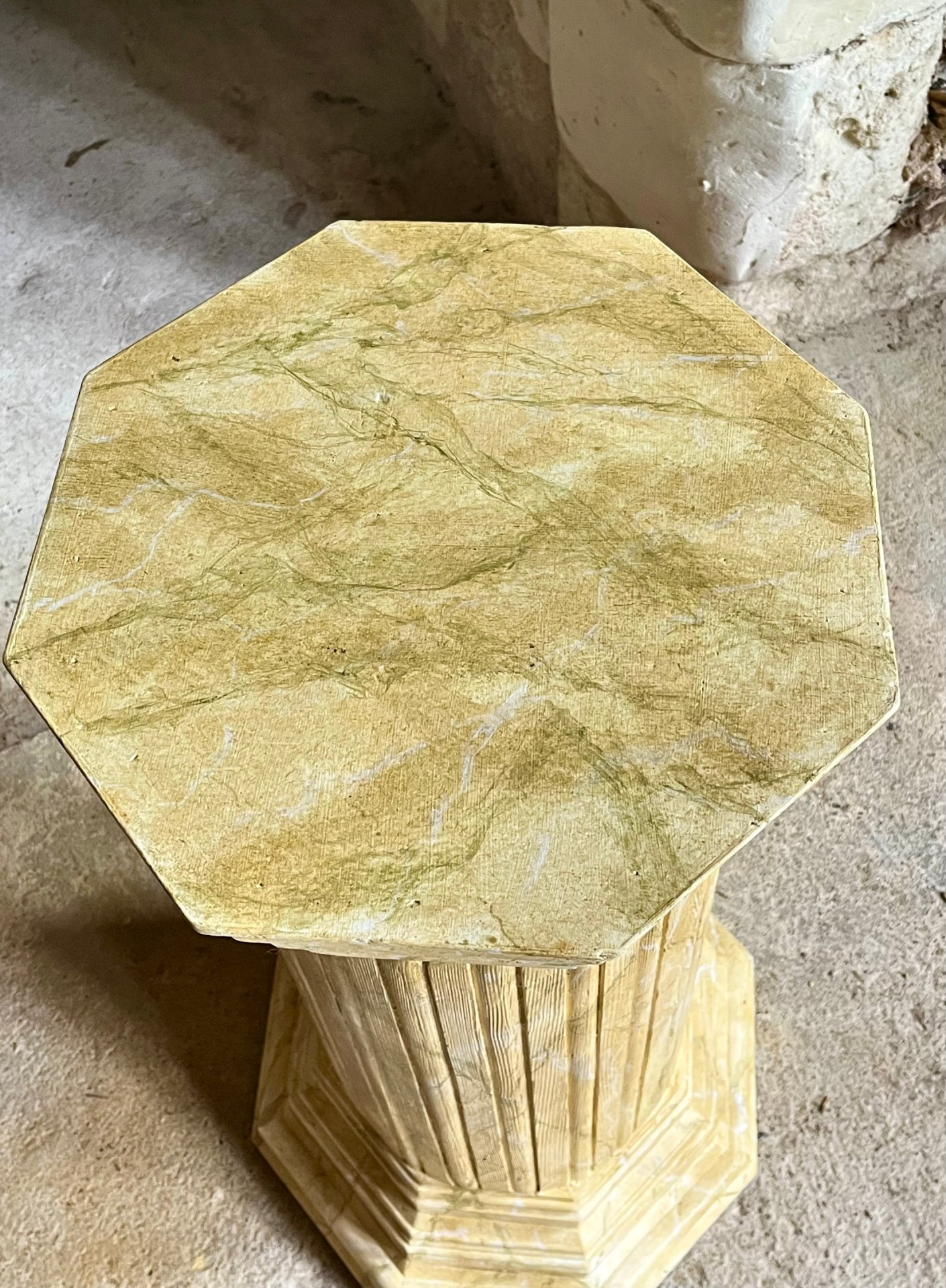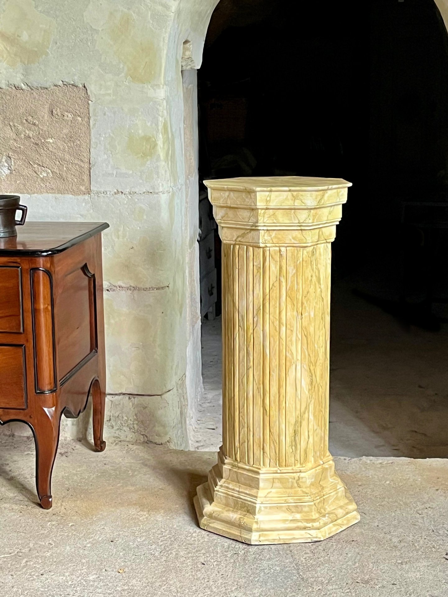 Colonne à fut cannelé , époque tout début XX ème , années 1900 , en pin à décor de faux marbre .