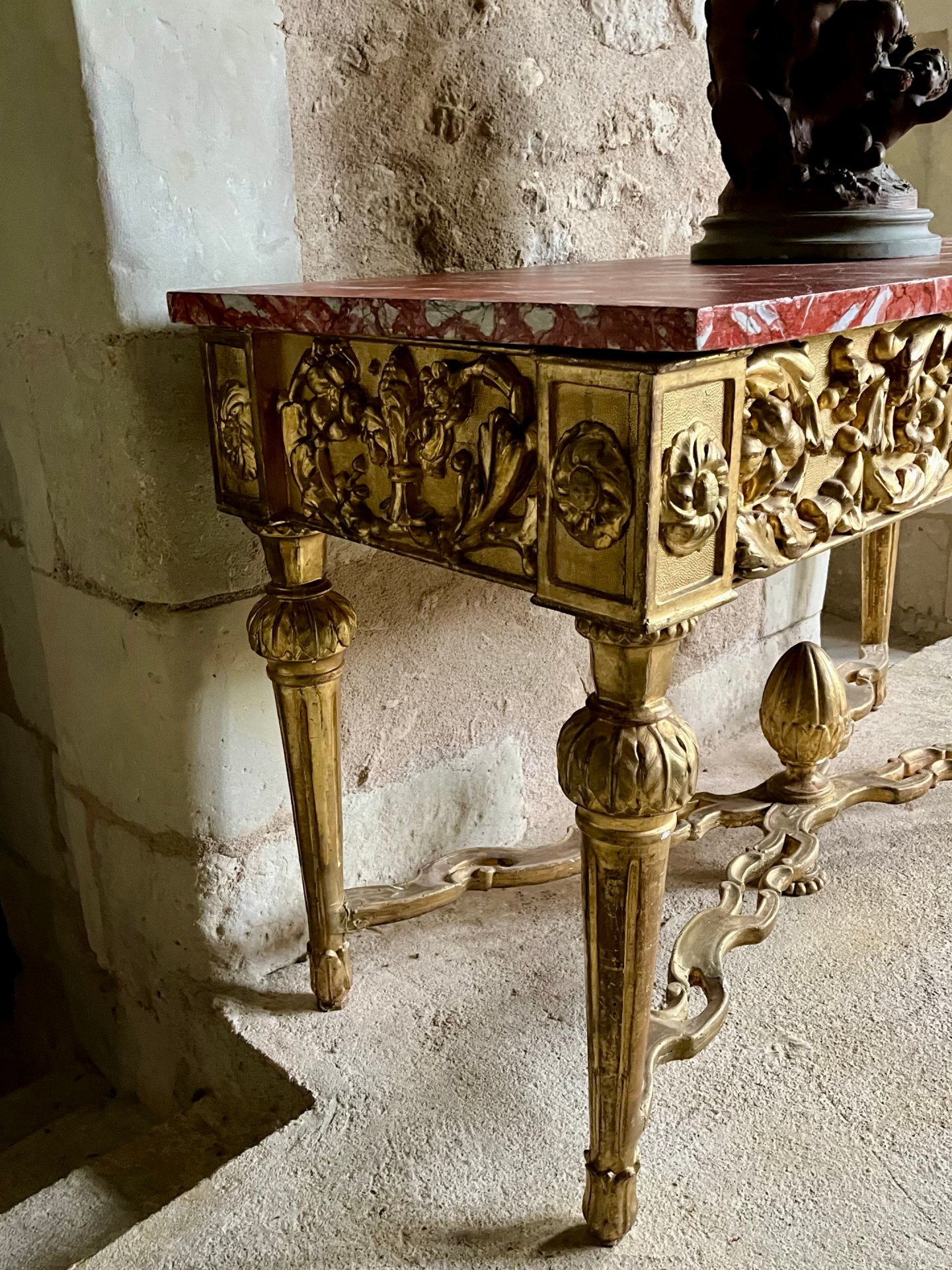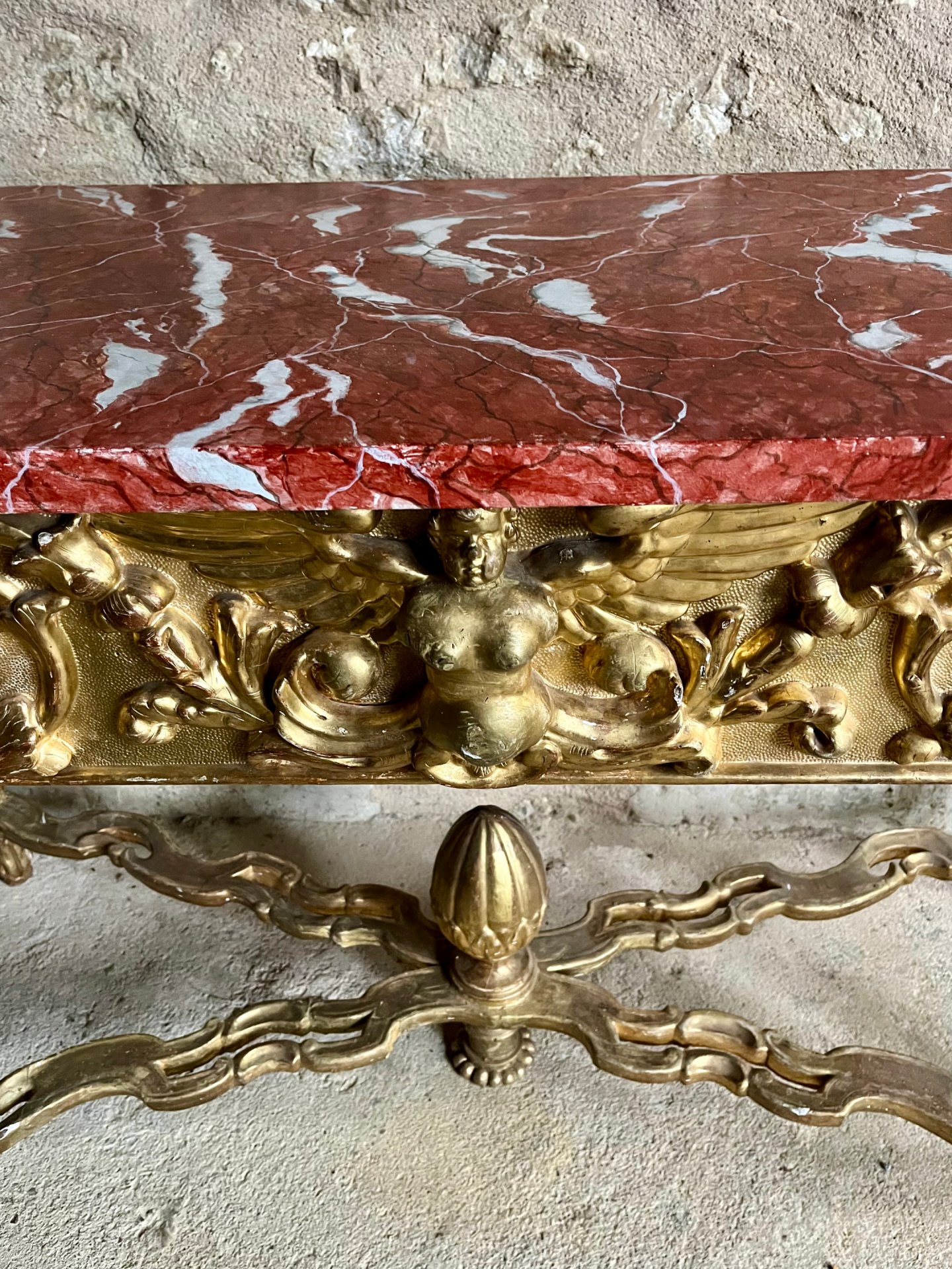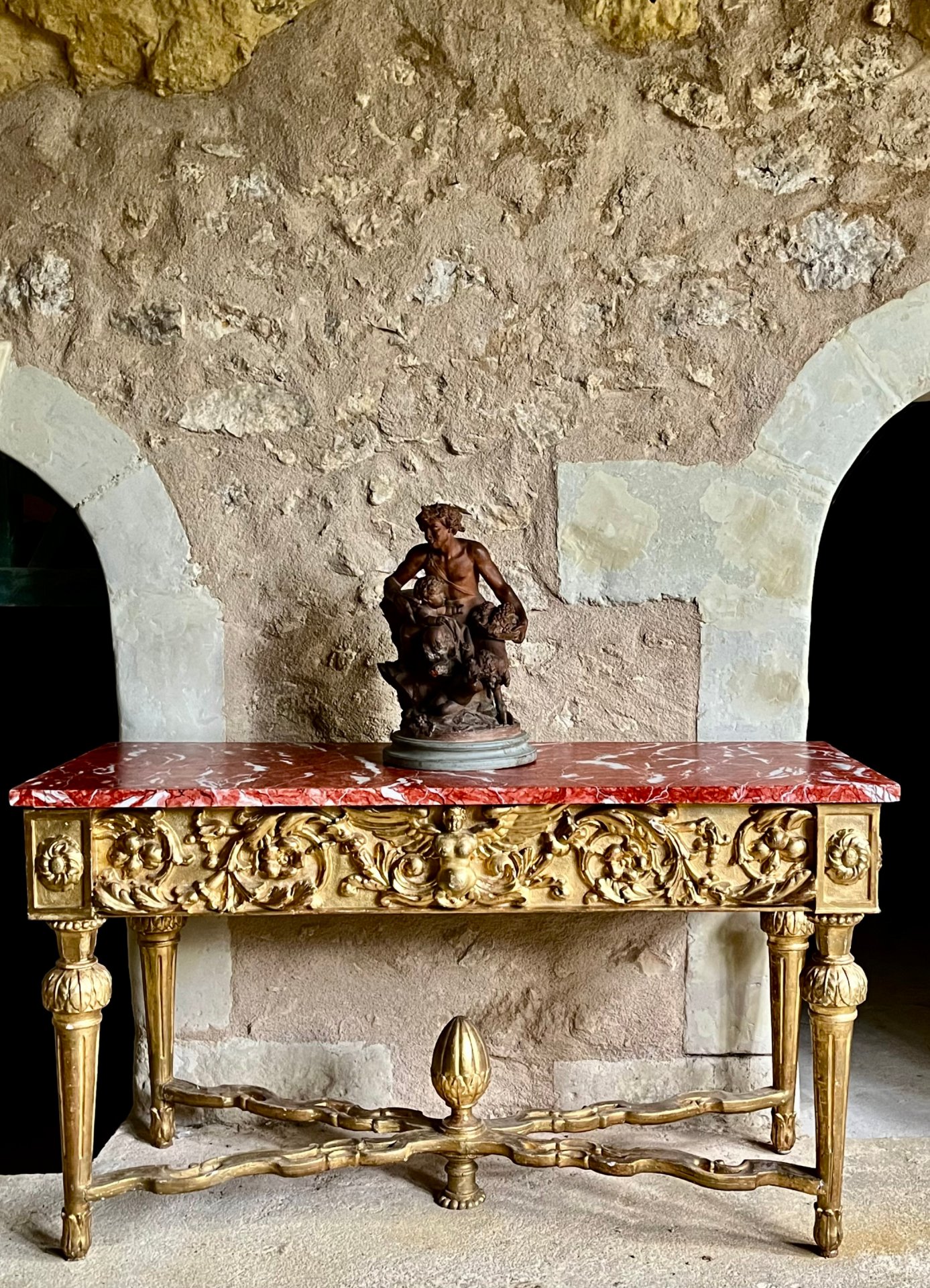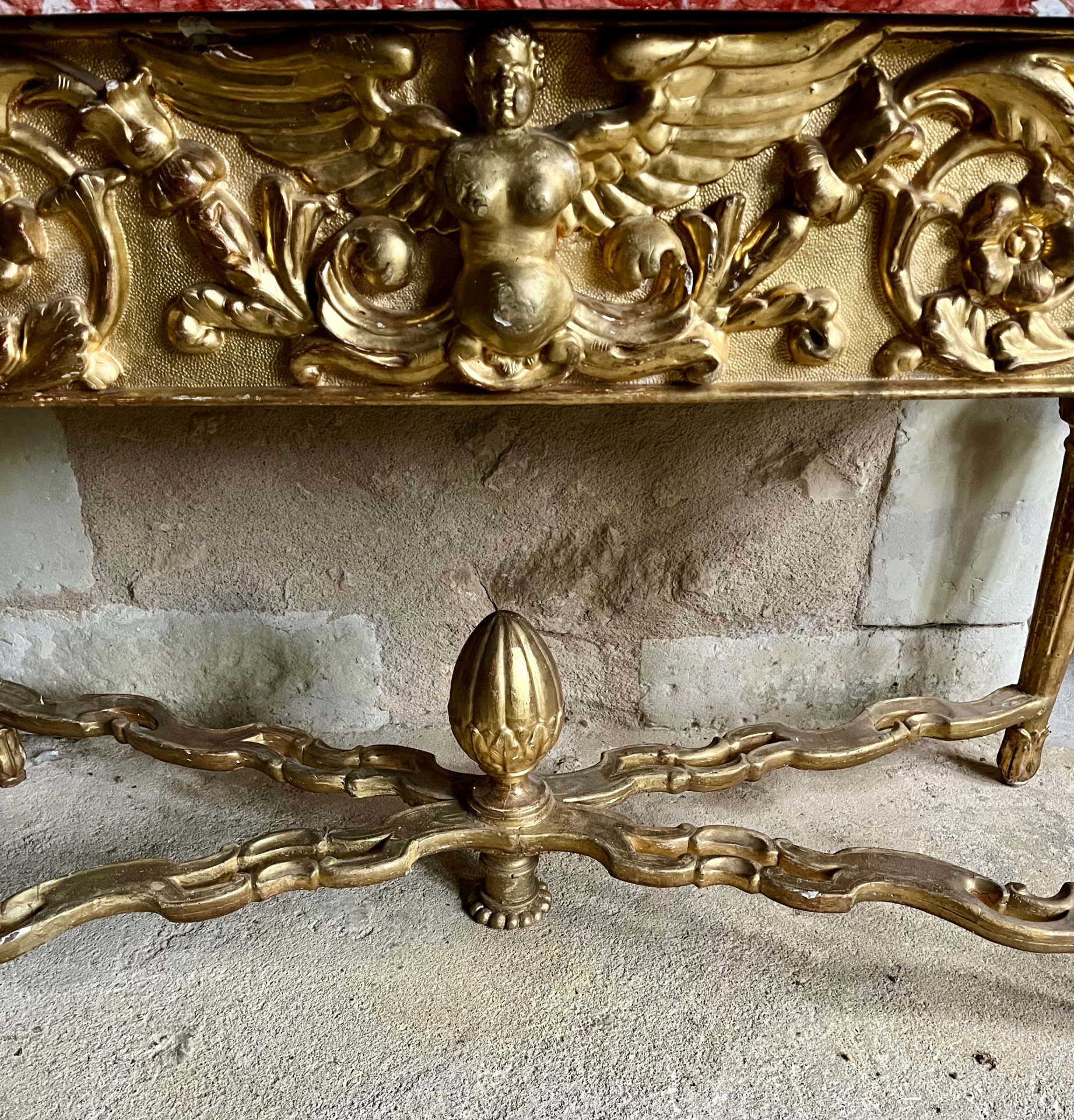 Grande console italienne d'époque fin XVIII ème en bois doré.